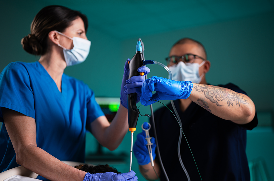 The dedicated endoscope holder keeps BFlex 2 secure and accessible during the procedure, while the protective sleeve helps contain drips and maintain a cleaner workspace.